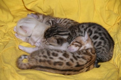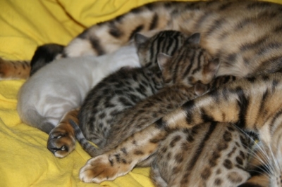 Paloma hat am Sonntag 10.März vier" härzegi Buebe "geboren! Die glücklichen Eltern sind: Paloma Del Corazon & Samurai von Snow Bengals